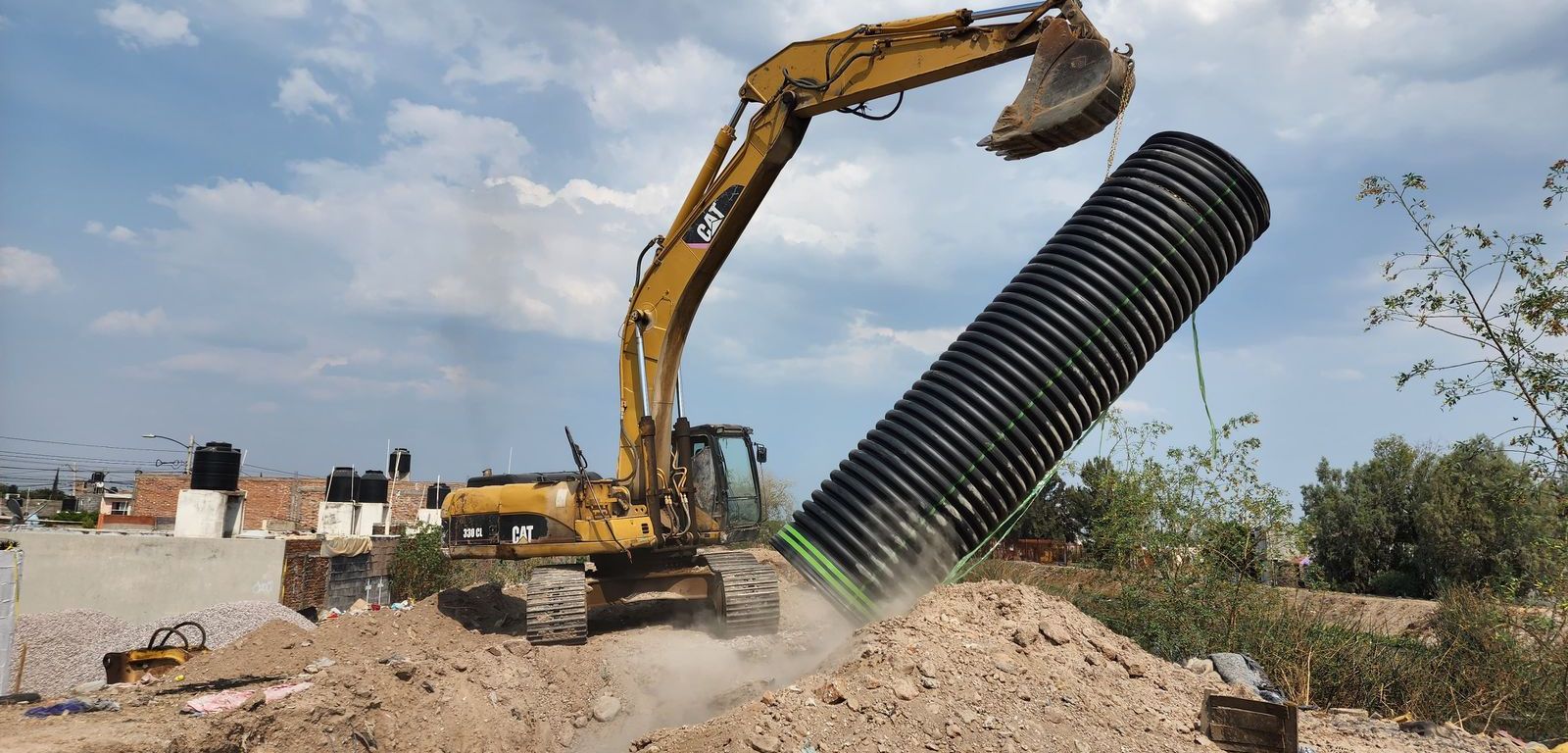 Sobre la calle Camino Antiguo a Los Gómez, se introduce un tubo de 60 pulgadas de diámetro de PEAD, material plástico que tiene alta resistencia a los impactos y representa una excelente barrera contra la humedad.