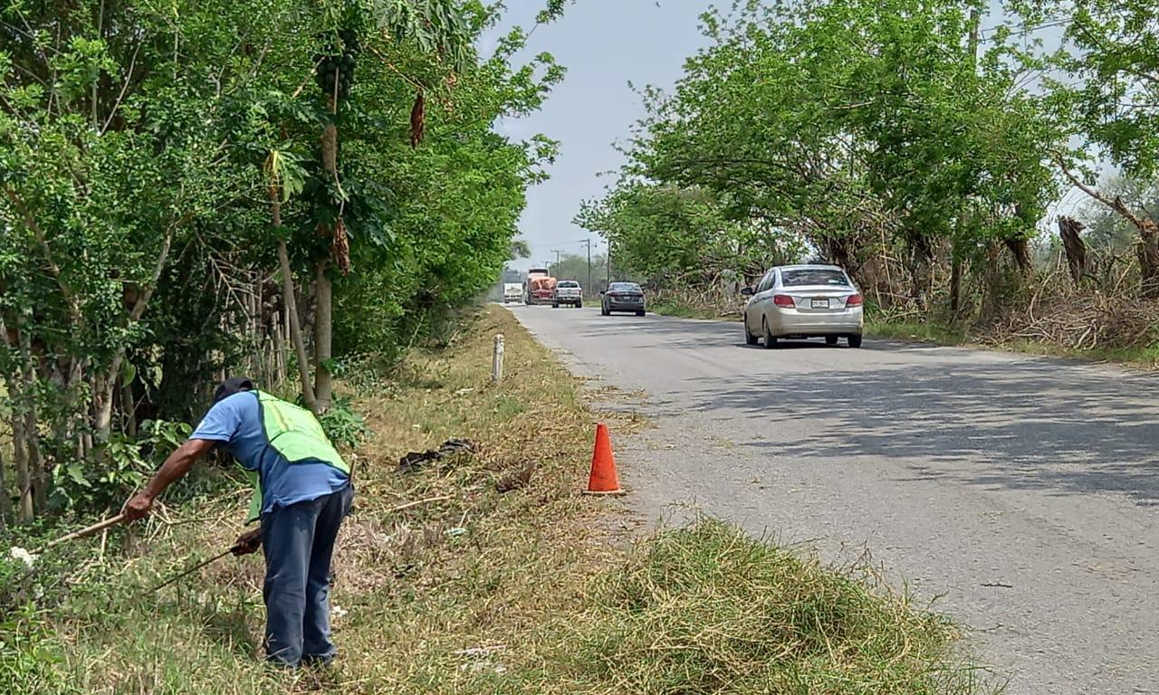 Los trabajos de conservación consisten en chapoleo y desmonte de las laterales del camino, así como retiro de maleza y hierba de gran tamaño a la orilla del arroyo vehicular, con lo que proporciona mayor visibilidad a quienes transitan por aquí.