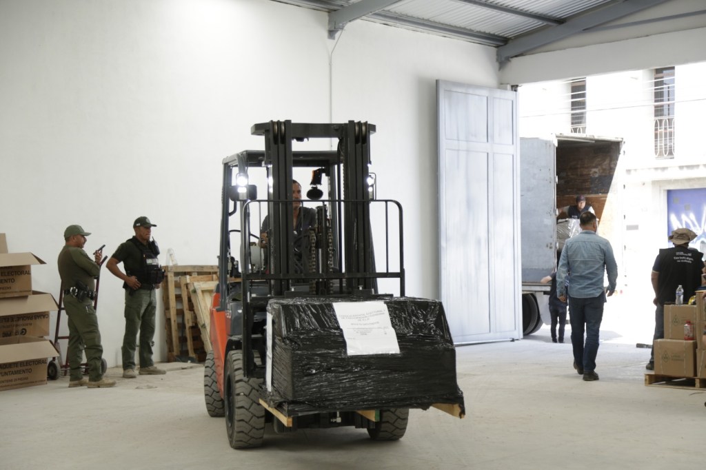 Las boletas se trasportaron en dos camiones de carga y se recibieron en una bodega electoral del CEEPAC, las cuáles estuvieron custodiadas en todo momento por elementos y vehículos de la guardia civil estatal que estuvieron salvaguardando la seguridad de las personas y de las boletas desde la salida de la empresa que las imprimió en la ciudad de Querétaro.