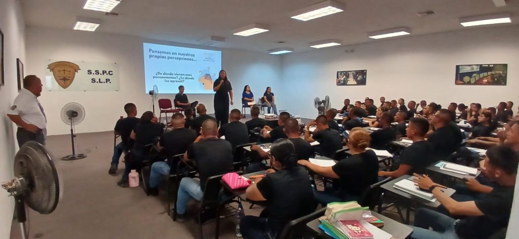 Cadetes de la segunda generación del Instituto de Profesionalización Policial de la Secretaría de Seguridad y Protección Ciudadana (SSPC), participaron en una conferencia impartida por la Comisión Estatal de Derechos Humanos (CEDH), y la Asociación Civil Mujeres Tejiendo Lazos, en el marco del Día Internacional contra la Homofobia, Lesbofobia, la Transfobia y la Bifobia.