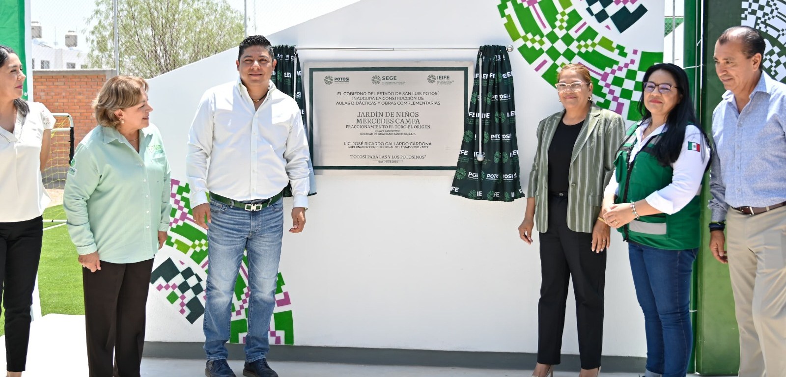 Como parte de la estrategia de construcción y reconstrucción de 100 planteles educativos con una inversión de 400 millones de pesos para las cuatro regiones en el 2024, este lunes el titular del Poder Ejecutivo del Estado, Ricardo Gallardo Cardona entregó la rehabilitación del jardín de niños, “Mercedes Campa”, así como el techado del patio cívico en la primaria “Dr. Agustín, Bocard Alvarado” en Soledad de Graciano Sánchez, con lo que se beneficia a cerca de 150 alumnos y alumnas.
