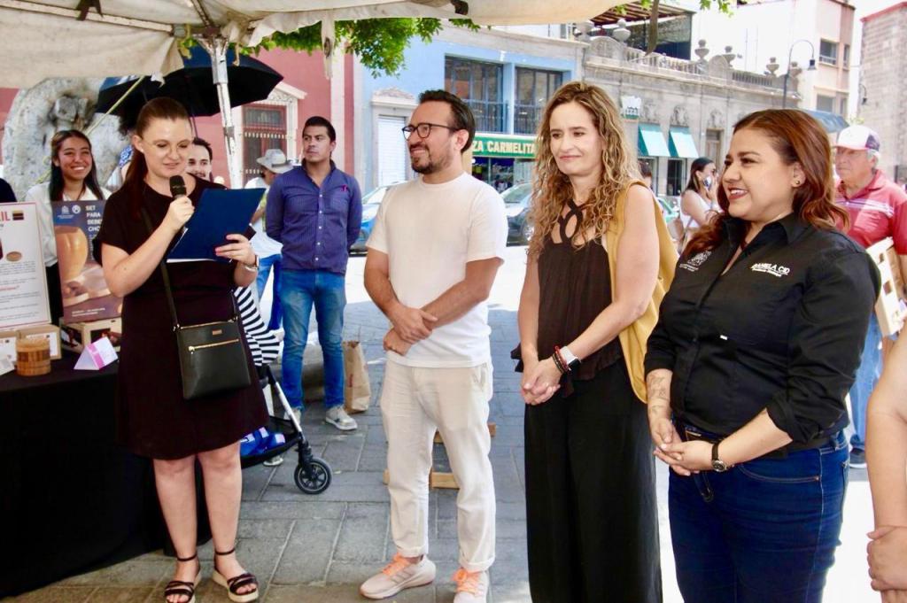 En la plazoleta del Carmen y ante participantes y representantes de la Máxima Casa de Estudios, detalló el apoyo de la UASLP hacia las y los estudiantes y espera que estas aportaciones no sólo sean en el ámbito del diseño industrial, sino también en beneficio de la comunidad potosina.