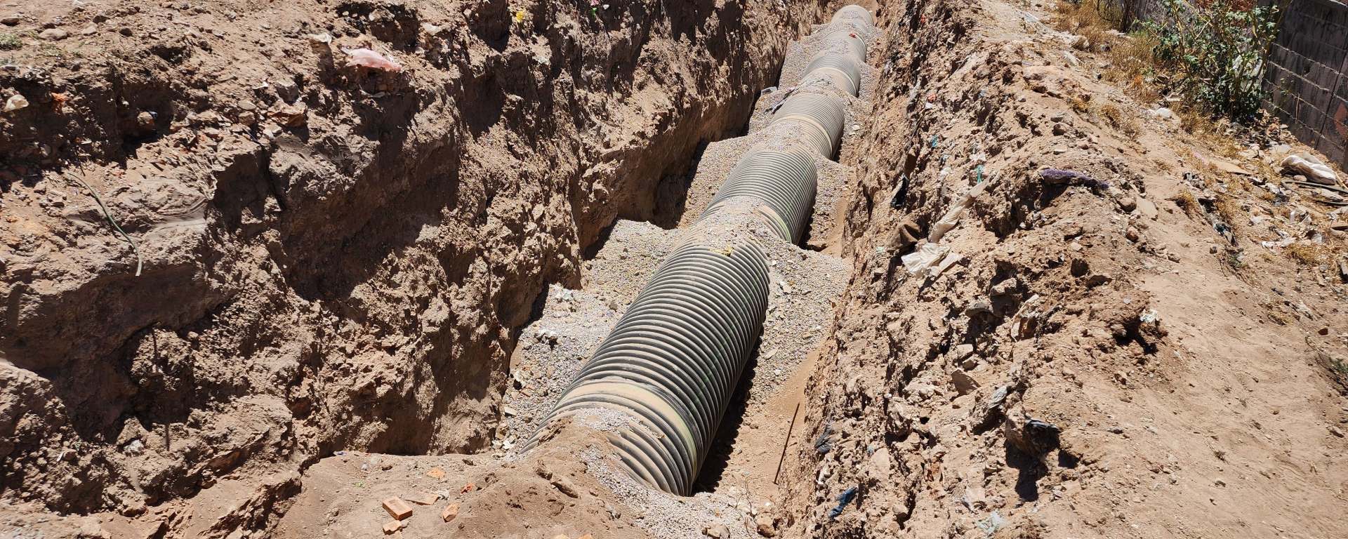 El Organismo Operador de Agua Potable, Alcantarillado y Saneamiento INTERAPAS informa que continúan los trabajos de reconstrucción del colector sanitario en “Los Silos” en Villa de Pozos y se extenderán hasta la calle 70 para reparar otro tramo colapsado.