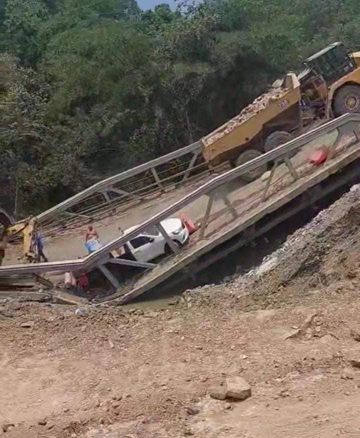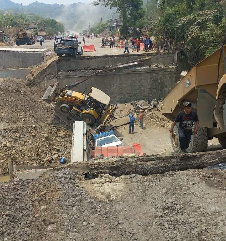 Protección Civil de Matlapa y Tamazunchale atienden colapso de un puente en la comunidad de Palictla ubicada entre ambos municipios.