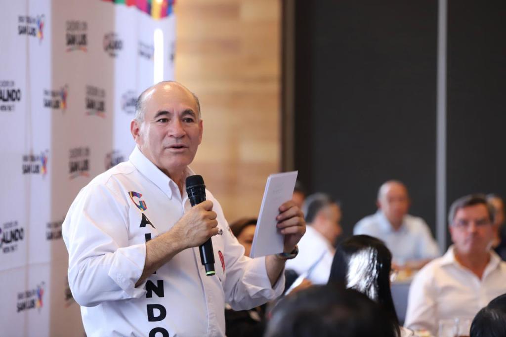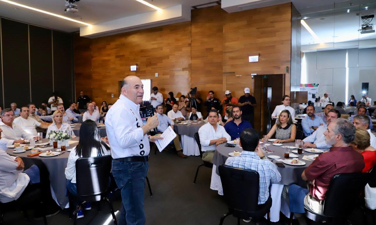 En reunión con el sector privado potosino el candidato de Fuerza y Corazón por San Luis a la alcaldía de la capital anunció la ampliación del Eje 140, así como la creación del Consejo de Seguridad de la Zona Industrial.