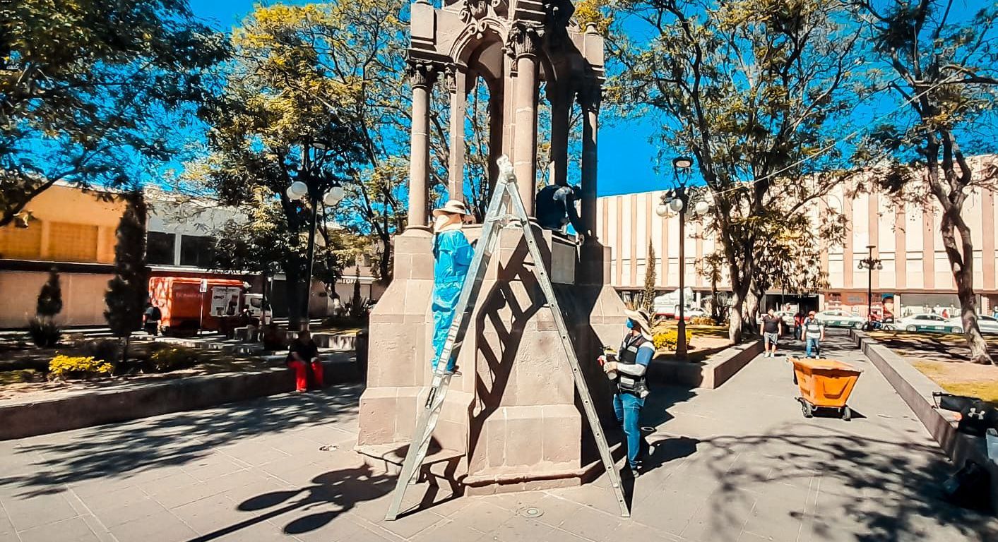 -La Unidad de Gestión del Centro Histórico concluyó la limpieza de la Columna de la Independencia en el Jardín San Juan de Dios