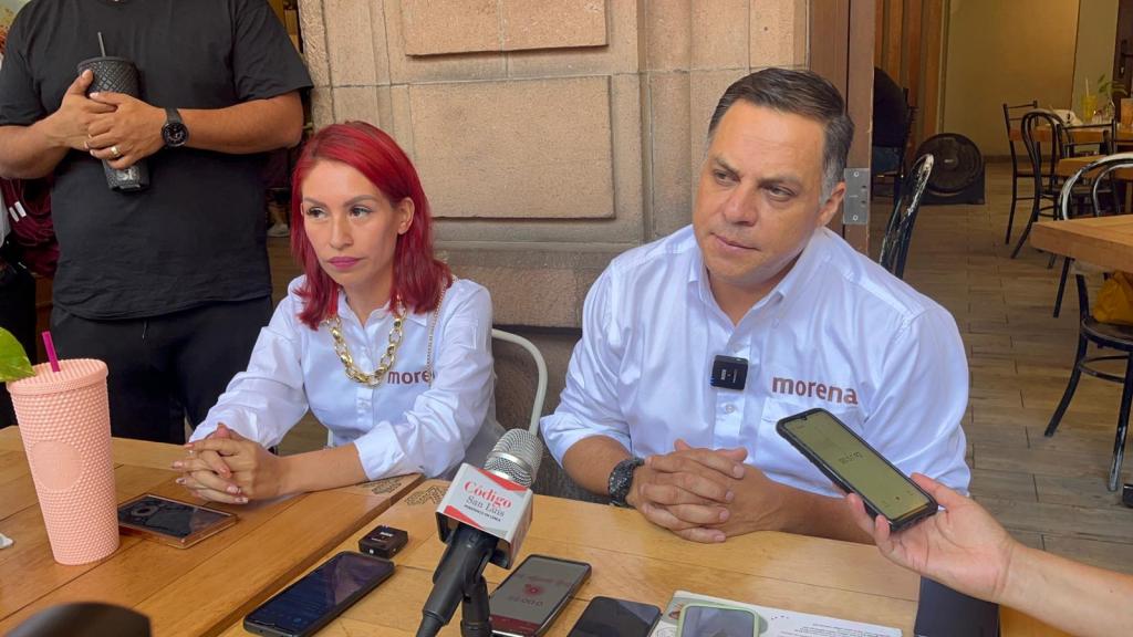 En rueda de prensa ante los medios de comunicación, la candidata del PES, acompañada por el candidato morenista, anunció su decisión de sumar esfuerzos y voluntades en favor de Soledad.
