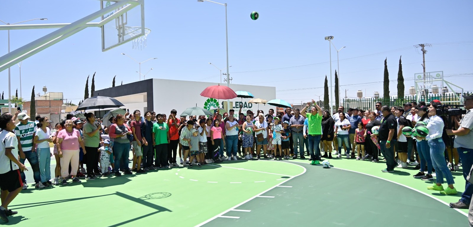 A fin de brindar más espacios inclusivos para las familias soledenses, el Titular del Poder Ejecutivo del Estado Ricardo Gallardo Cardona, entregó la nueva Unidad Recreativa y Deportiva de Ciudad Real, en Soledad de Graciano Sánchez, continuando con el Plan de Desarrollo Estatal para equipar áreas estratégicas con canchas deportivas, áreas verdes y espacios para la sana convivencia, con una inversión de 5.6 millones de pesos.