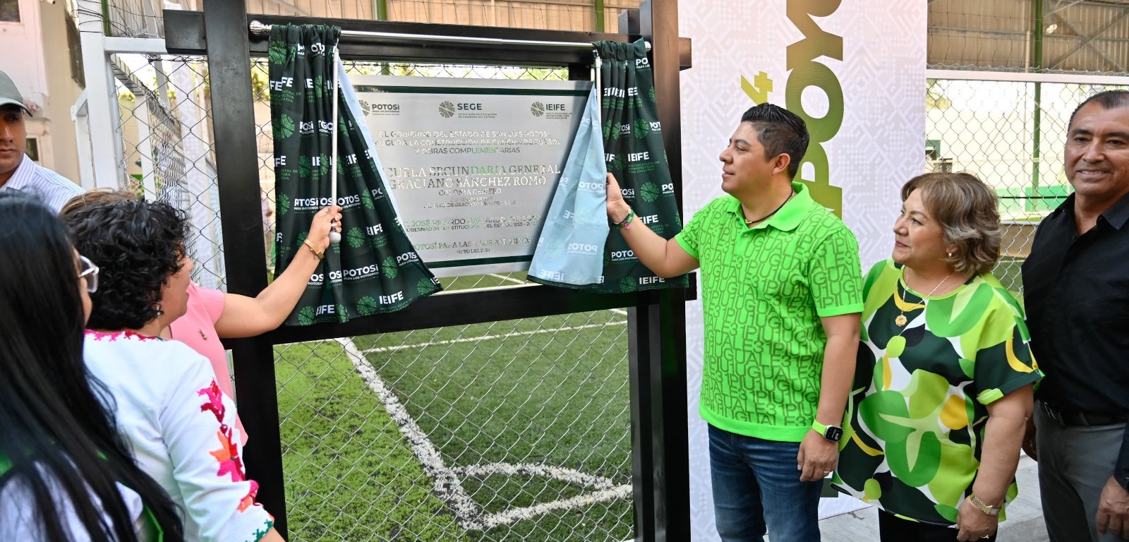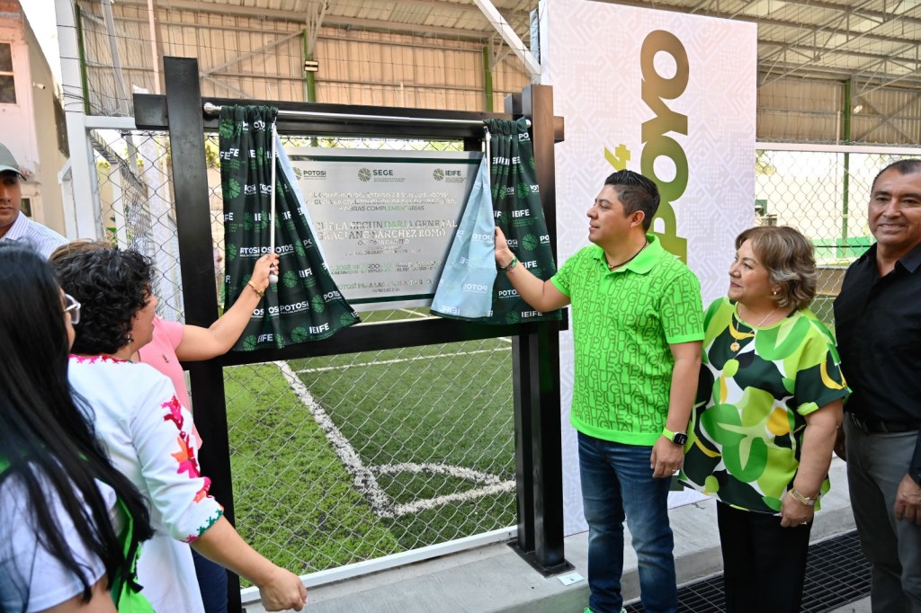 Como parte de las múltiples acciones de infraestructura educativa que el Poder Ejecutivo del Estado impulsa en las cuatro regiones, este viernes el Mandatario Ricardo Gallardo Cardona, entregó a la comunidad estudiantil de la secundaria general “Graciano Sánchez Romo”, la nueva cancha de futbol rápido y obras complementarias, que les permitirá a las y los estudiantes, un desarrollo integral incluyendo actividades de sana recreación, prácticas atléticas y convivencia.