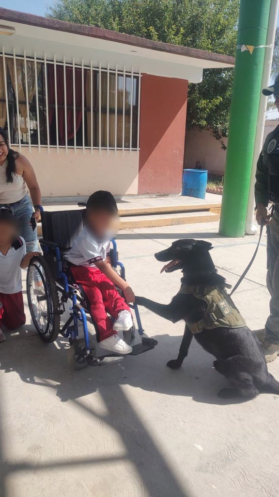 A su vez, en el municipio de Villa de Reyes, acudieron a la escuela primaria “Ponciano Pérez Ramírez, en donde alumnado de primer hasta sexto de primaria fueron parte de las dinámicas del Agrupamiento K9, fomentando en ellos la empatía y concientización sobre el respeto a los animales y a sus mascotas.