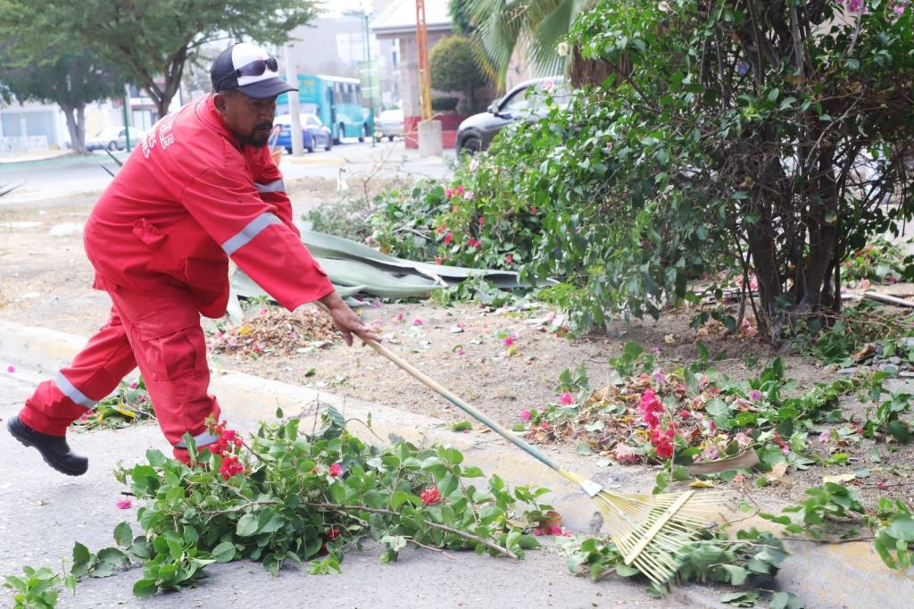 Cuadrillas de trabajadores de Servicios Municipales y de Gestión Ecológica y Manejo de Residuos trabajaron en el retiro de maleza, limpieza de camellones, poda de árboles, pintura de guarniciones y mantenimiento al sistema de alumbrado público.