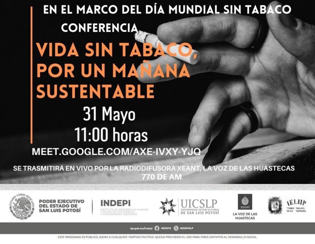 En el marco del Día Mundial Sin Tabaco, este 31 de mayo, el Poder Ejecutivo Estatal a través del Instituto de Desarrollo Humano y Social de Pueblos y Comunidades Indígenas (Indepi), impartirá de manera virtual y radiofónica la conferencia «Vida sin tabaco, por un mañana sustentable» dirigida al alumnado personal docente y administrativo de la Universidad Intercultural.