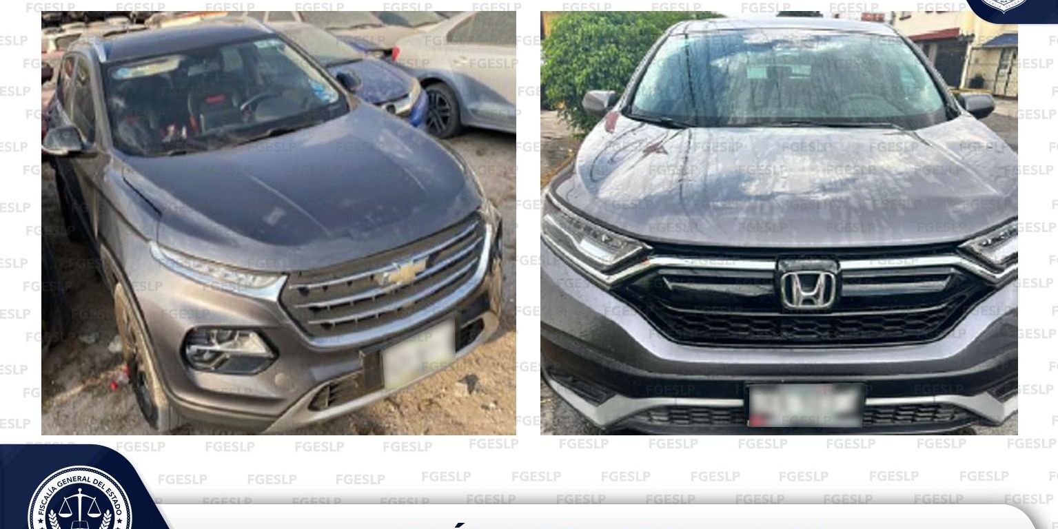 Durante labores inherentes a su cargo, agentes de la Policía de Investigación (PDI) de la Fiscalía General del Estado de San Luis Potosí (FGESLP) realizaron el aseguramiento de dos vehículos que contaban con reporte de robo y alteraciones en la serie.