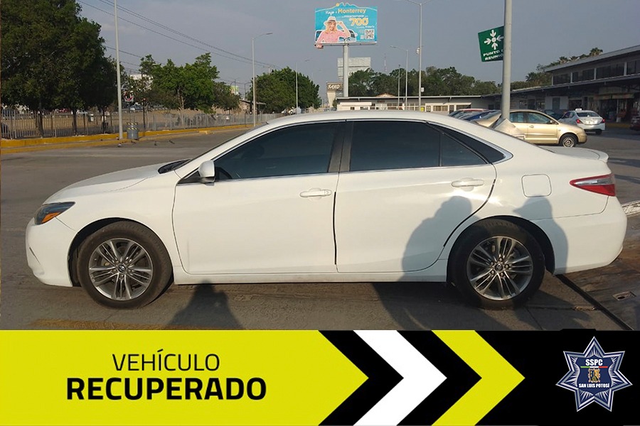 Agentes de Guardia Municipal efectuaban patrullajes de vigilancia sobre el suroriente de la ciudad, cuando recibieron un reporte por medio de radiofrecuencia en el que se informaba de la presencia de un vehículo marca Toyota Camry color blanco, mismo que circulaba en las inmediaciones de la Terminal Terrestre Potosina, y cumplía con las características de una unidad previamente reportada como robada.