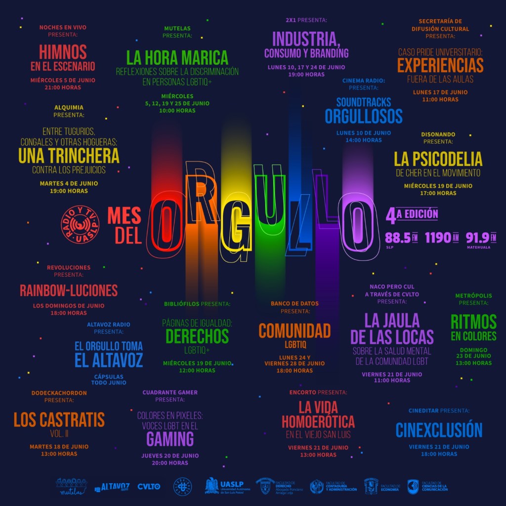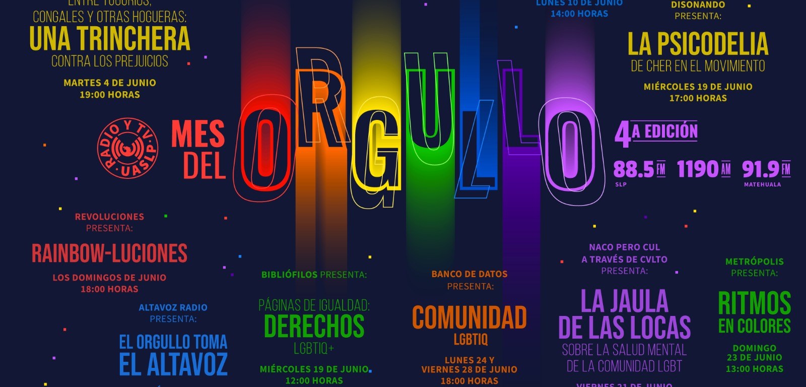 Con 17 producciones, la Dirección de Radio y Televisión de la Universidad Autónoma de San Luis Potosí (UASLP) realizará durante el mes de junio la 4ta Jornada Radiofónica “Mes del Orgullo” un proyecto que tiene como objetivo visibilizar las diversas realidades que vive la comunidad LGBTTTIQ+.