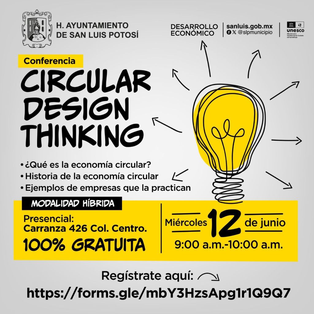 La primera capacitación se llama “Circular design thinking” y se realizará el 12 de junio en un horario de 9 a 10 de la mañana, siendo bajo la modalidad híbrida y gratuita. Los interesados podrán registrarse a través de https://forms.gle/QukByPgdcjt7KXBr6