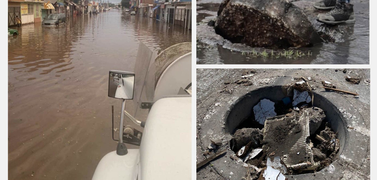 Esta situación es muy recurrente en varios puntos de la ciudad, pues la gente retira las tapas para bajar el nivel de agua más rápido, sin embargo sólo se daña la infraestructura ya que ingresan otros sólidos provocando taponamientos aguas abajo.