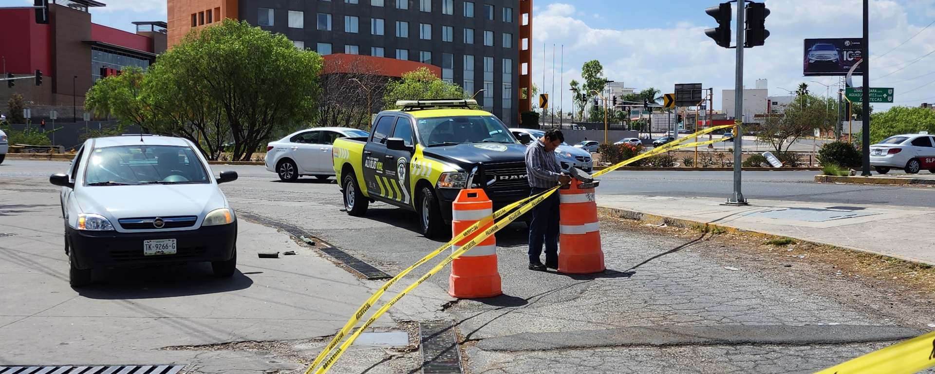 SLP.- El Nuevo Interapas atiende un colapso detectado en la avenida Sierra Vista cerca de una plaza comercial; la zona ya fue acordonada por cuadrillas del área de drenajes, por lo que se llama a la población a tomar precauciones para evitar riesgos.
