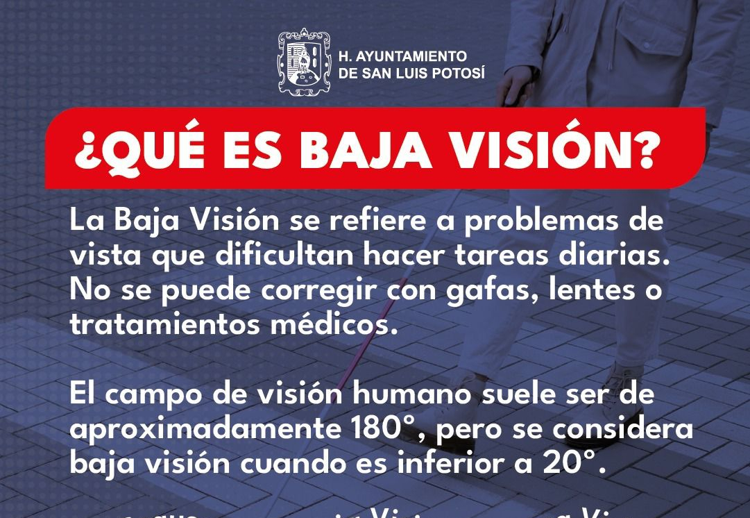 Para crear conciencia sobre la baja visión, que puede poner en riesgo a una persona, el Ayuntamiento de San Luis Capital y la Comisión de Grupos Vulnerables, mantienen el respaldo a la campaña “Tengo Baja Visión” que promueve el Instituto para Ciegos y Débiles Visuales “Ezequiel Hernández Romo” (Ipacidevi) proporcionando una insignia a las personas con esta condición para ayudar a que la población las reconozca.