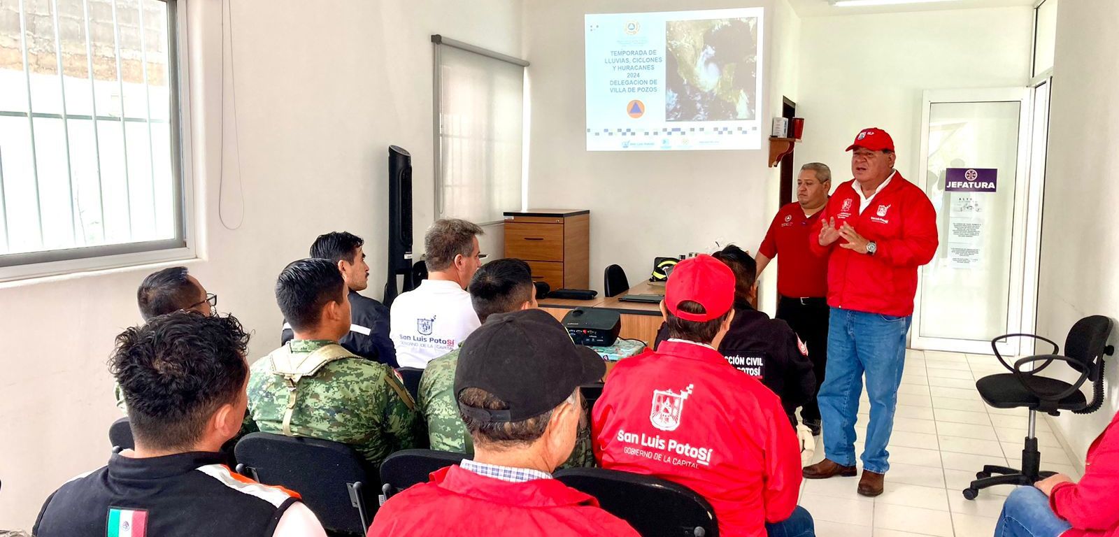 Este jueves, el Ayuntamiento de San Luis Potosí instaló una mesa permanente de atención en la Delegación de Villa de Pozos con las autoridades de Protección Civil, Ejército Mexicano, emergencias, salud, Conagua, e Interapas, para, de manera interinstitucional, realizar acciones preventivas ante las lluvias derivadas de la tormenta tropical “Alberto”.