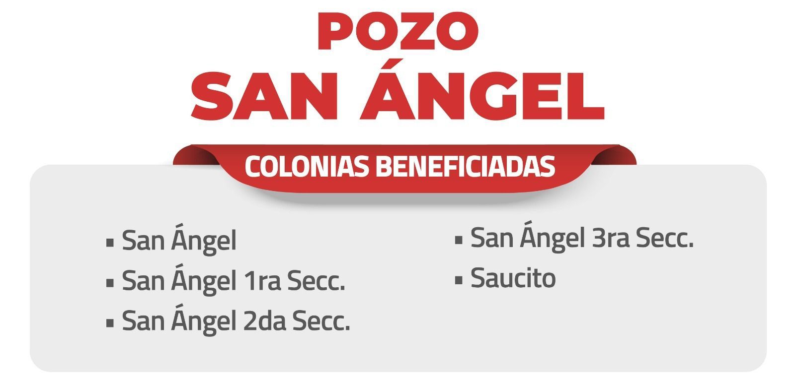 Las colonias beneficiadas con el funcionamiento de este pozo son: San Angelín, San Ángel I, II y III así como una parte del la colonia Saucito.