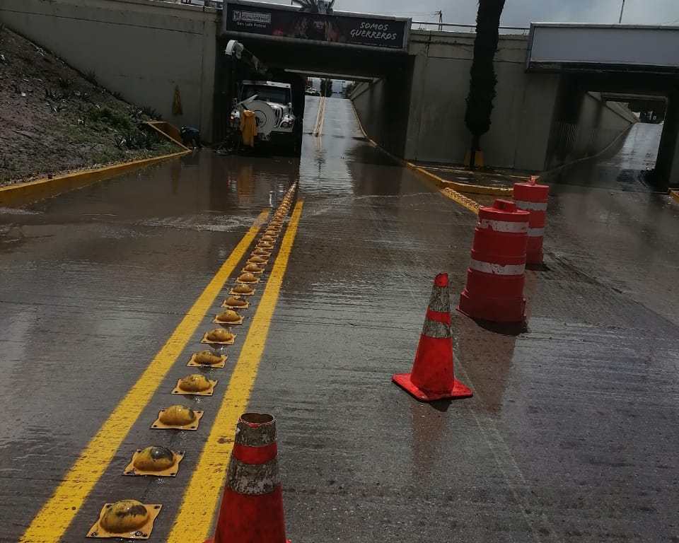 Debido a la presencia de lluvias durante la madrugada de este viernes el Nuevo Interapas mantiene la supervisión y trabajos de limpieza en puentes y pasos a desnivel de la capital potosina, para evitar inundaciones.
