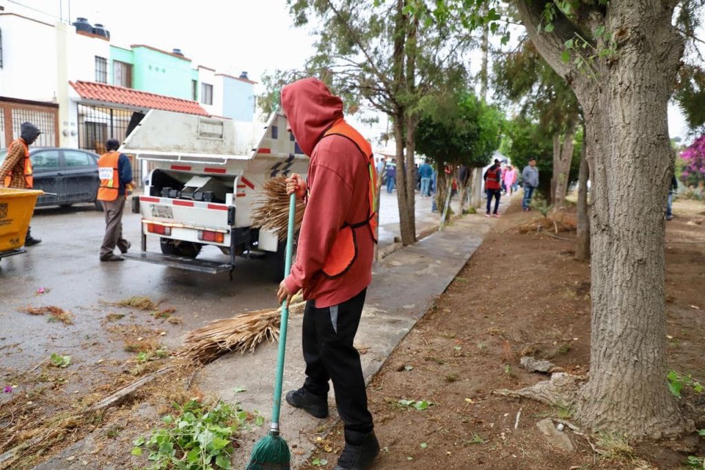 En la colonia Haciendas de México se realizaron acciones de barrido manual, retiro de basura y desechos, faldeo de árboles, diagnóstico para retiro de árboles secos, reforestación, pintura en guarnición y diagnóstico a luminarias; en las que participaron, además de habitantes del sector y trabajadores del Ayuntamiento, personas infractoras del Bando de Policía y Gobierno, que realizan trabajo comunitario en favor de la sociedad.