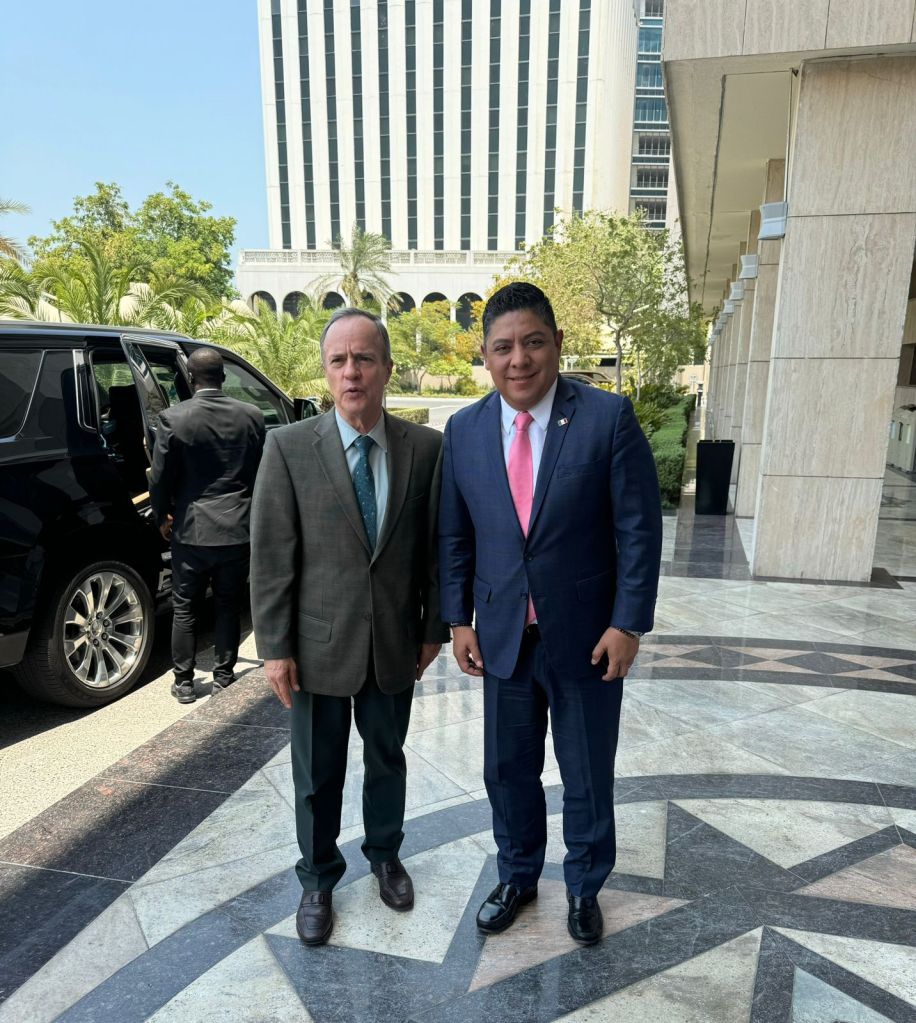 Durante la primera reunión en Qatar, el Gobernador Gallardo Cardona estuvo acompañado por el embajador de México en Qatar, José Guillermo Ordorica Robles, y el secretario de Desarrollo Económico, Jesús Salvador González Martínez.