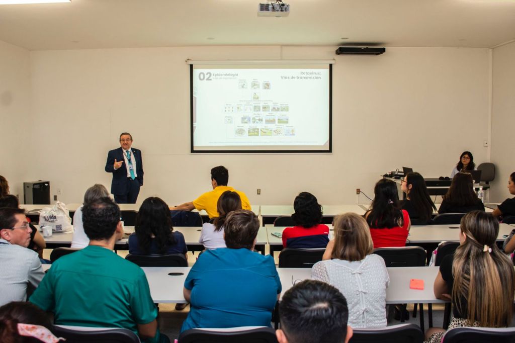 Durante la conferencia, el experto explicó que ese virus es una causa común de gastroenteritis aguda, particularmente en niños menores de cinco años en países de ingresos bajos y medianos. Resaltó que dicha gastroenteritis es una de las principales causas de enfermedad y muerte en todo el mundo, con el rotavirus como el principal agente etiológico. A pesar de la disponibilidad de vacunas desde 2006, éste sigue siendo prevalente, especialmente en regiones con acceso limitado a servicios de salud.