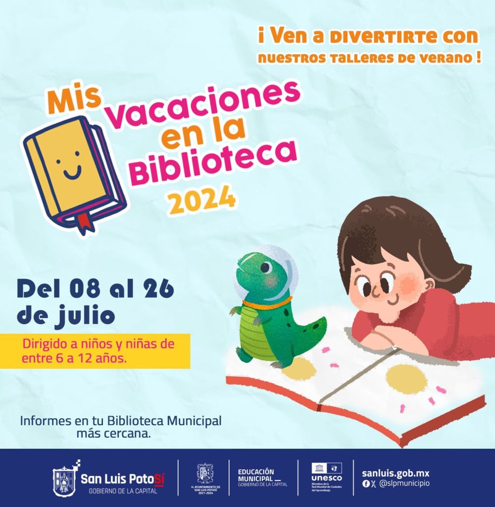 El Ayuntamiento de San Luis Potosí realizará «Mis Vacaciones en la Biblioteca 2024», una serie de talleres organizados por la Dirección de Educación Municipal, dedicados a las y los niños de la ciudad, del 8 al 26 de julio.