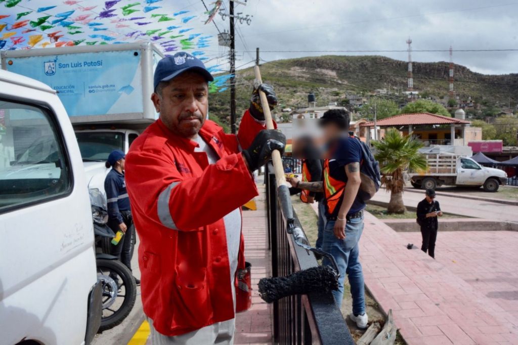 El Domingo de Pilas del Gobierno Municipal de San Luis Potosí llegó a la localidad de Escalerillas, en donde personal del Ayuntamiento Capitalino, conjuntamente con habitantes de esta zona, dedicaron la mañana al remozamiento de la plaza principal, frente al templo de la Cruz.