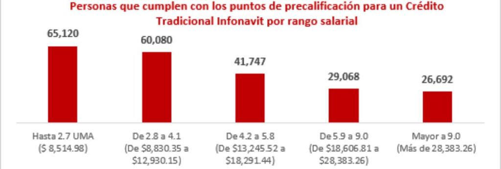 Del total de personas que al cierre de 2023 cumplían con los requisitos de precalificación, el 56.2% se concentró en las y los derechohabientes que percibían menos de 12 mil 930.15 pesos al mes (4.1 UMAS de 2023).