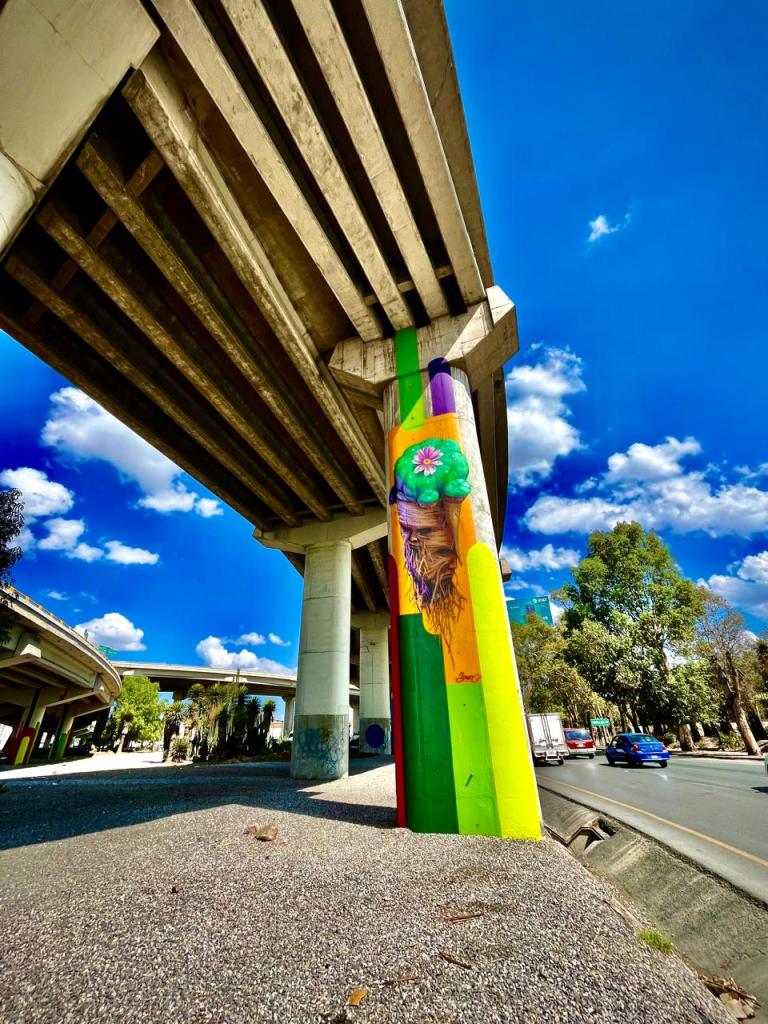La Galería Juárez ya comienza a tomar forma, destacando el monumental mural titulado «Peyote misterioso», creado por el artista urbano @bru.mos en colaboración con el equipo de @espinate.mx. Asimismo, se da inicio al segundo mural a cargo de la talentosa artista Moon Venture.