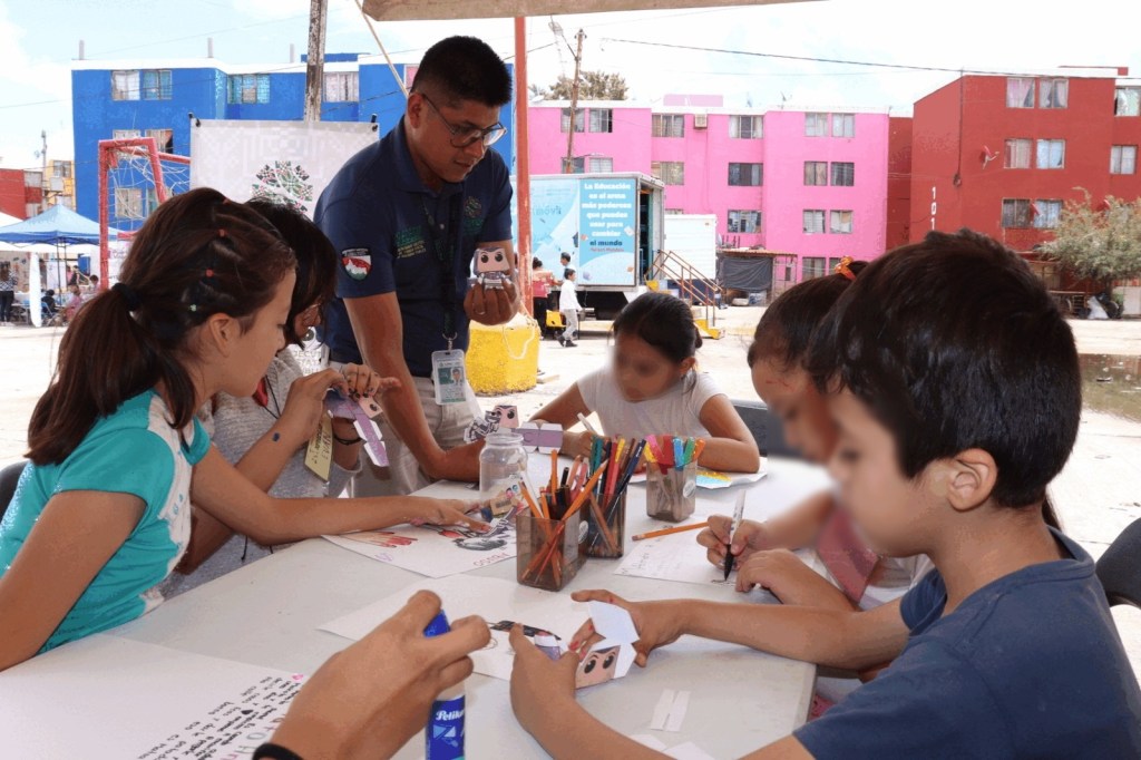 A través de juegos recreativos como serpientes y escaleras, jenga, tangram y Uno, niñas y niños conocen más sobre la prevención del delito y adicciones, mientras que con dibujo expresan los problemas a los que se enfrentan a su edad.