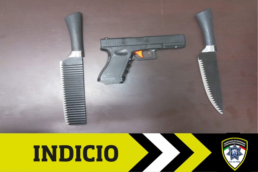 Como resultado de una eficaz acción policial, agentes municipales de la Secretaría de Seguridad y Protección Ciudadana (SSPC) logaron la detención de un hombre que fue señalado de amenazar con un arma de fuego a transeúntes en la zona conocida como los huaracheros. Al realizarle una revisión preventiva, se le encontraron dos cuchillos en una mochila que portaba y la réplica de arma de fuego.