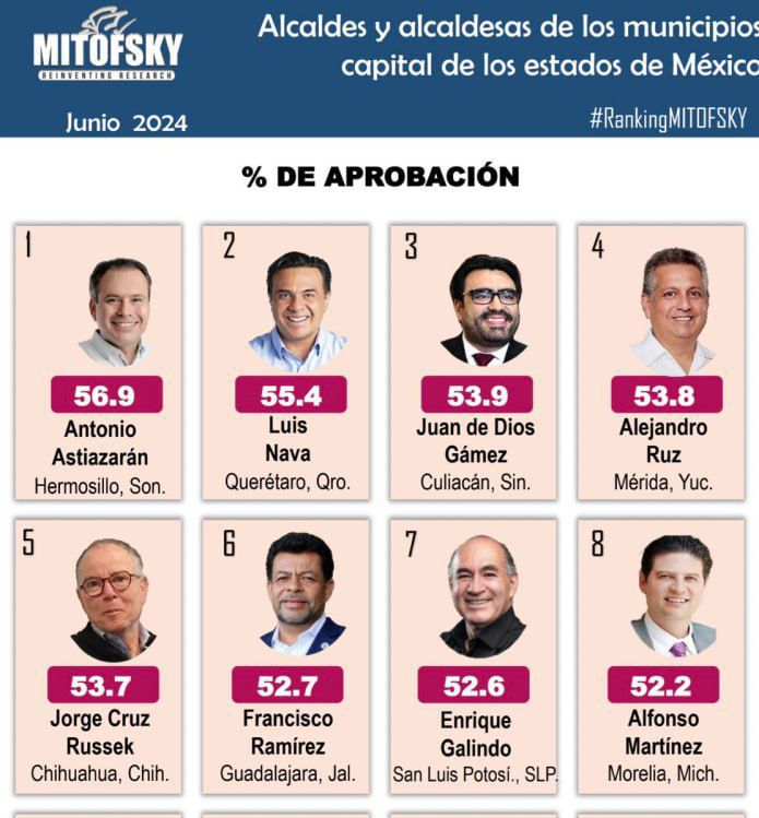 De acuerdo con el ranking de la citada empresa, líder en el campo de la investigación de la opinión pública, el Presidente Municipal de San Luis Potosí se posicionó en el lugar número 7, de este estudio realizado en las ciudades capitales del país.