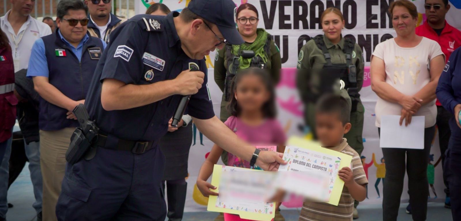 En la ceremonia de clausura, el Comisario Juan Antonio Villa Gutiérrez, Secretario de Seguridad y Protección Ciudadana del Ayuntamiento de San Luis Potosí, informó que durante el campamento en la colonia Guanos, se sumaron más de 70 niños, niñas y adolescentes a las actividades.