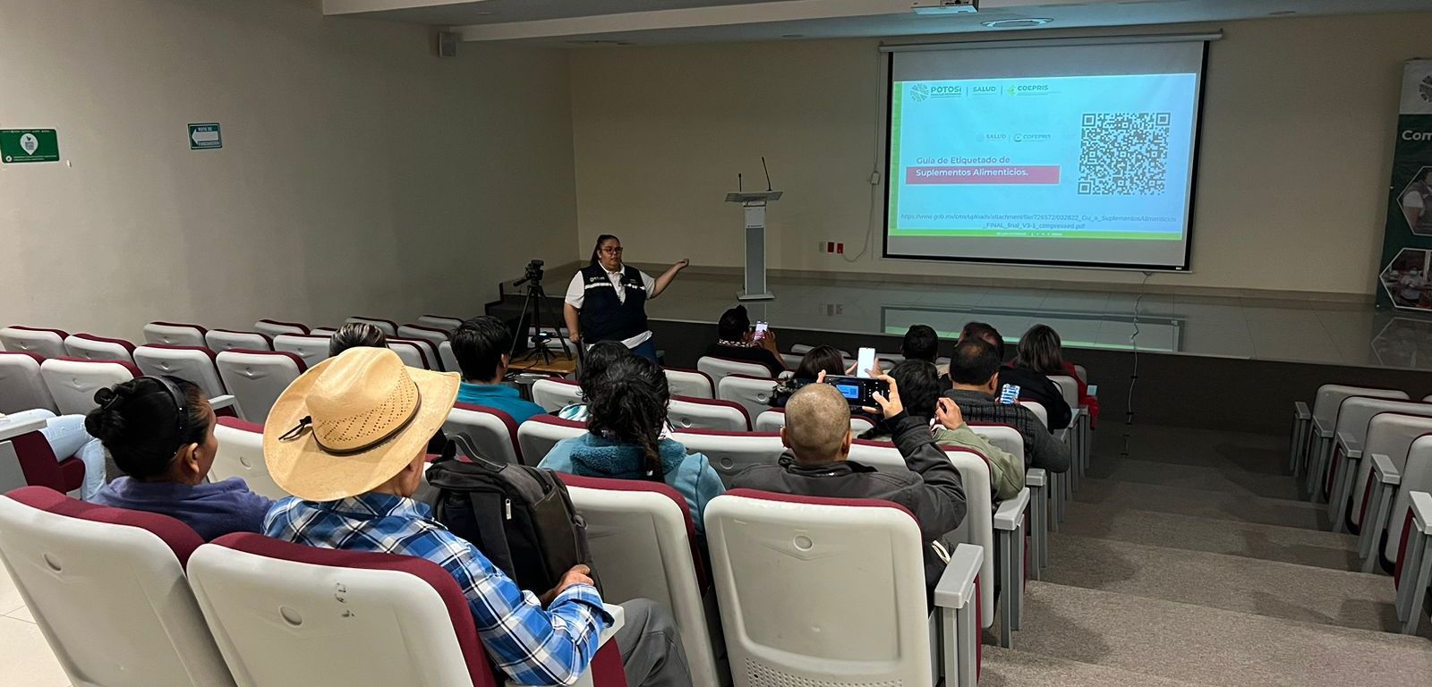 En apoyo a los expositores de alimentos, bebidas y productos de belleza que participarán en la FENAPO 2024, así como para lograr que el evento ferial se desarrolle sin riesgos sanitarios para las y los potosinos y visitantes, la Comisión Estatal para la Protección Contra Riesgos Sanitarios (COEPRIS), desarrolló la primera fase de capacitación en normatividad sanitaria donde participaron expositores de productos como botellas de mezcal, jobito, licores, rompope y otras bebidas con alcohol, alimentos pre-envasados y productos de belleza.