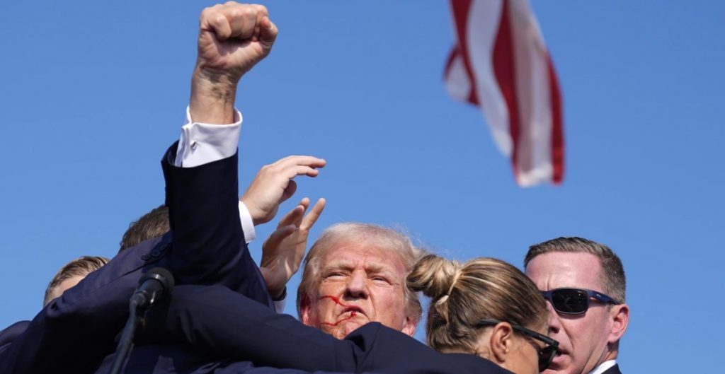 Trump estaba mostrando un gráfico con las cifras de cruces fronterizos cuando empezaron a sonar detonaciones entre la multitud. Se podía ver a Trump llevándose la mano derecha al cuello. Parecía tener sangre en la cara.
