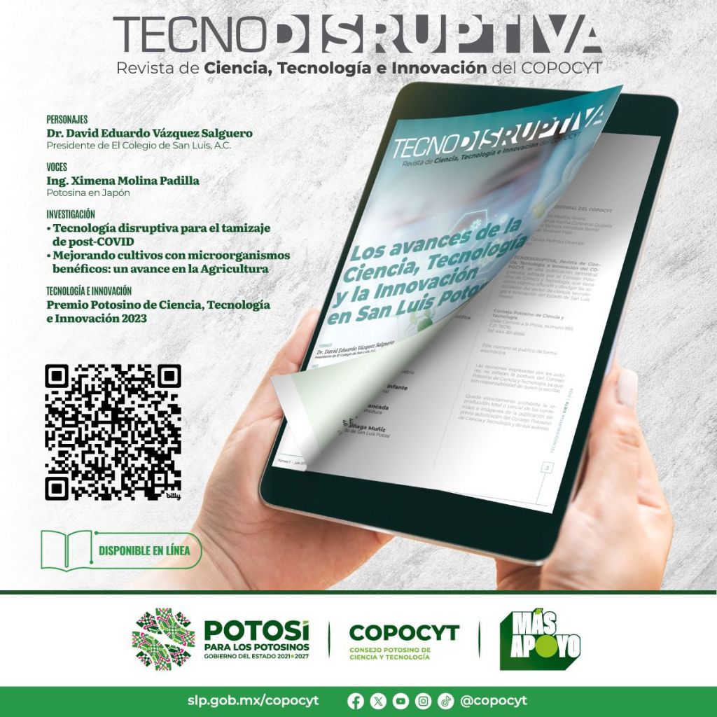 El Consejo Potosino de Ciencia y Tecnología (Copocyt), publicó la séptima edición de la revista digital “TecnoDisruptiva”, en donde aborda los avances de la ciencia, la tecnología y la innovación en San Luis Potosí, los principales programas de fomento a las vocaciones científicas enfocados a la perspectiva de género y la participación de las mujeres en la ciencia.