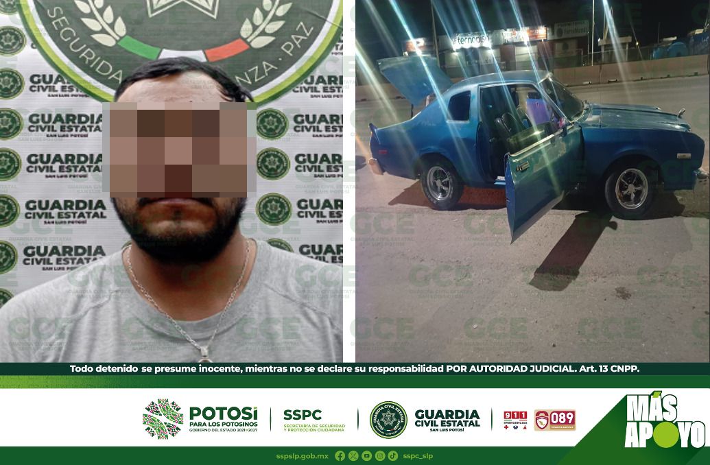 Agentes de la Guardia Civil Estatal (GCE), detuvieron a un automovilista por presuntos delitos contra la seguridad de tránsito, en la colonia Arboledas de Jacarandas.
