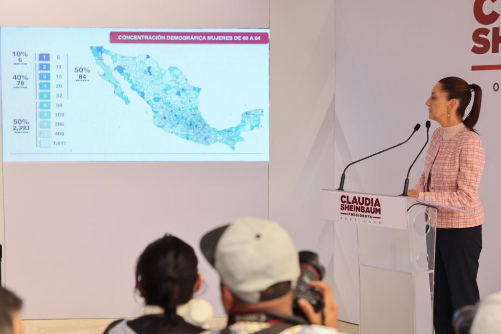 ’’En el caso de mujeres: 2025, universal para todas las mujeres adultas mayores indígenas o afroamericanas de 60 a 64 años, eso significa, mexicanas que residen en municipios indígenas y afromexicanos. Y por otro lado, tomamos la decisión de que para que sea universal también y no sea por situación económica, lo vamos a dar por edad. En el 2025 van a recibir su apoyo las mujeres de 63 y 64 años años, si los ingresos nos dan, van a aumentando de acuerdo a la edad; y ya en el 2026 ya buscamos hacerlo universal, de 60 a 64 años de edad’’, informó.