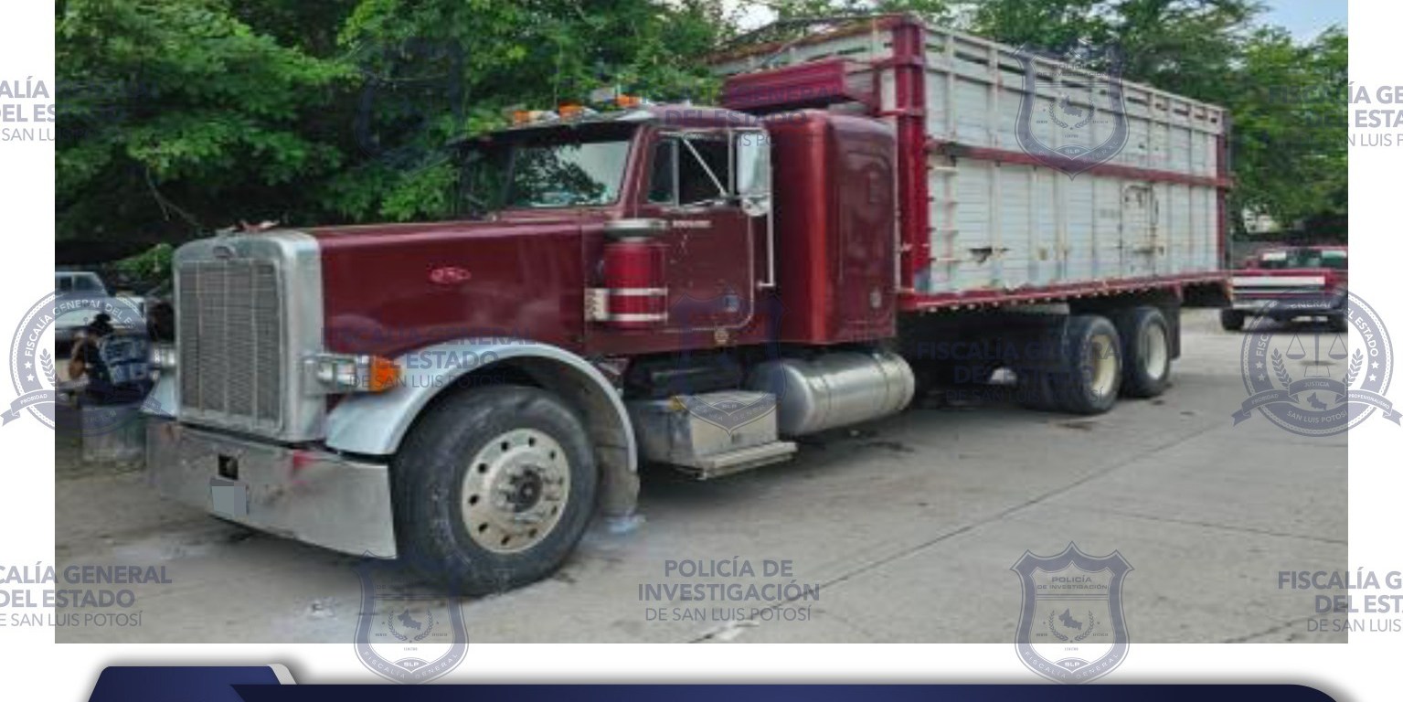 La Fiscalía General del Estado de San Luis Potosí (FGESLP) detalló que, se trata de un tractocamión tipo Torton, en colores rojo y blanco, modelo 1993, el cual no contaba con registro nacional en la Plataforma México.