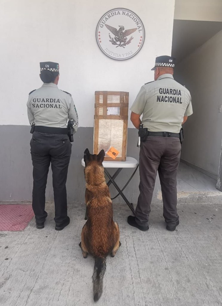 La caja con el posible enervante fue asegurada y puesta a disposición ante la