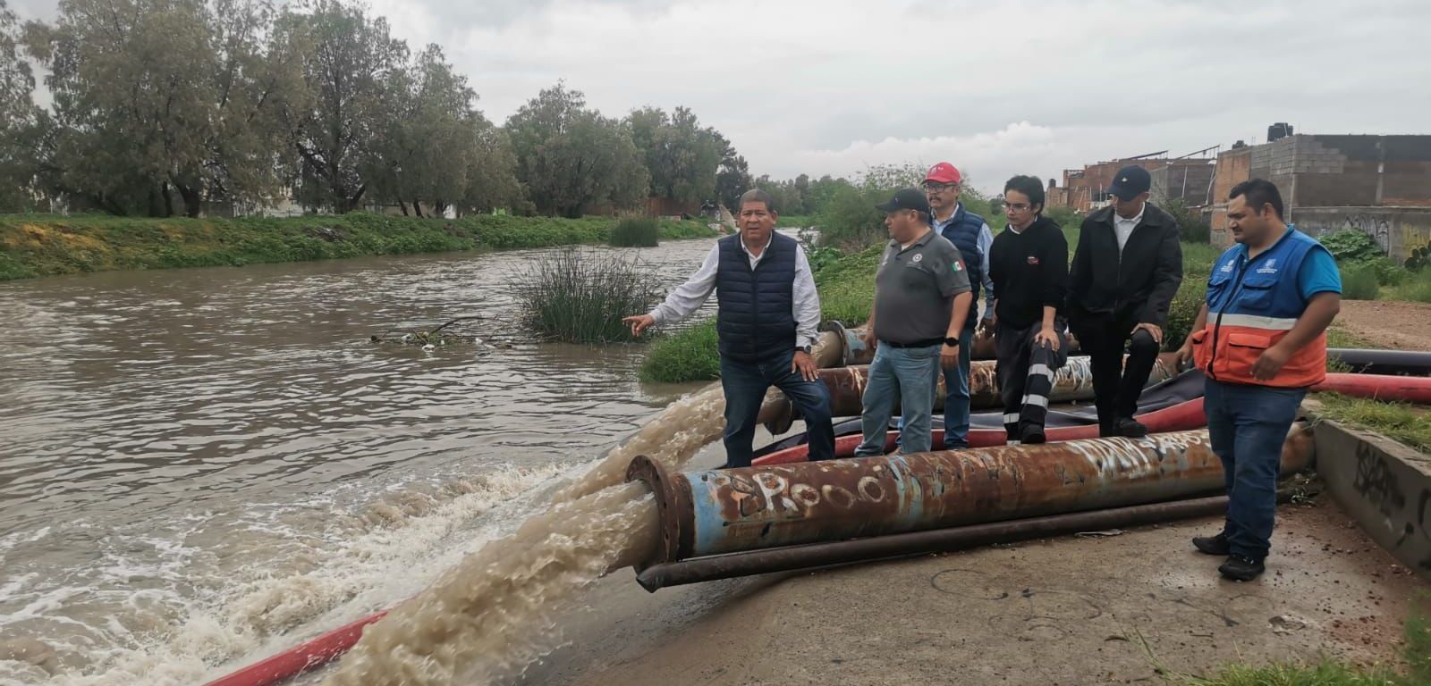 Personal del Gobierno de la Capital encabezado por Enrique Galindo Ceballos, atiende los cárcamos Las Mercedes y Los Silos, para evitar inundaciones en la zona baja del área metropolitana.