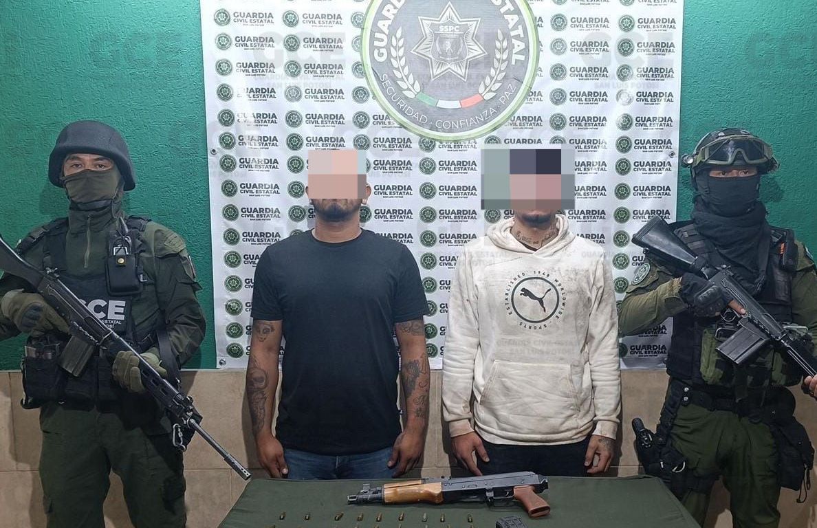 Derivado del seguimiento, los presuntos se impactaron contra una palmera, sobre Avenida de los Cactus, en el municipio de Soledad de Graciano Sánchez. Ahí fueron detenidos Edwin «N» de 21 años de edad y Adrián «N» de 25 años, quienes fueron despojados de un fusil calibre 7.62×39 milímetros, un cargador y 28 cartuchos útiles.