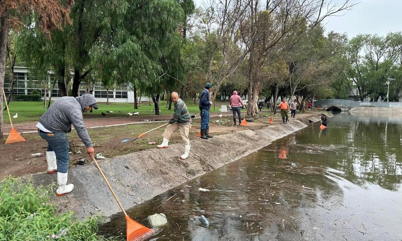 Personal de los parques Tangamanga I y II realiza acciones de retiro y limpieza de basura, ramas y árboles, además del desfogue controlado de los lagos captadores de agua