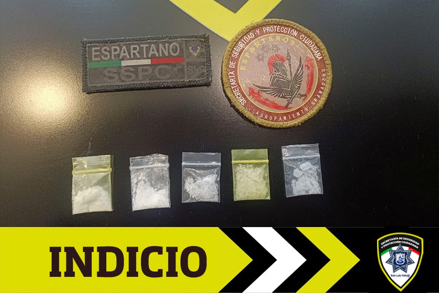 Derivado de los patrullajes de seguridad y vigilancia sobre el cuadrante oriente de la ciudad, agentes municipales de la Secretaría de Seguridad y Protección Ciudadana (SSPC) llevaron a cabo el aseguramiento de una persona de sexo masculino al que le fueron detectados cinco envoltorios de sustancia blanca granulada con las características a la droga conocida como cristal, el hombre fue detectado realizando una falta administrativa y posteriormente le fue detectada la droga.