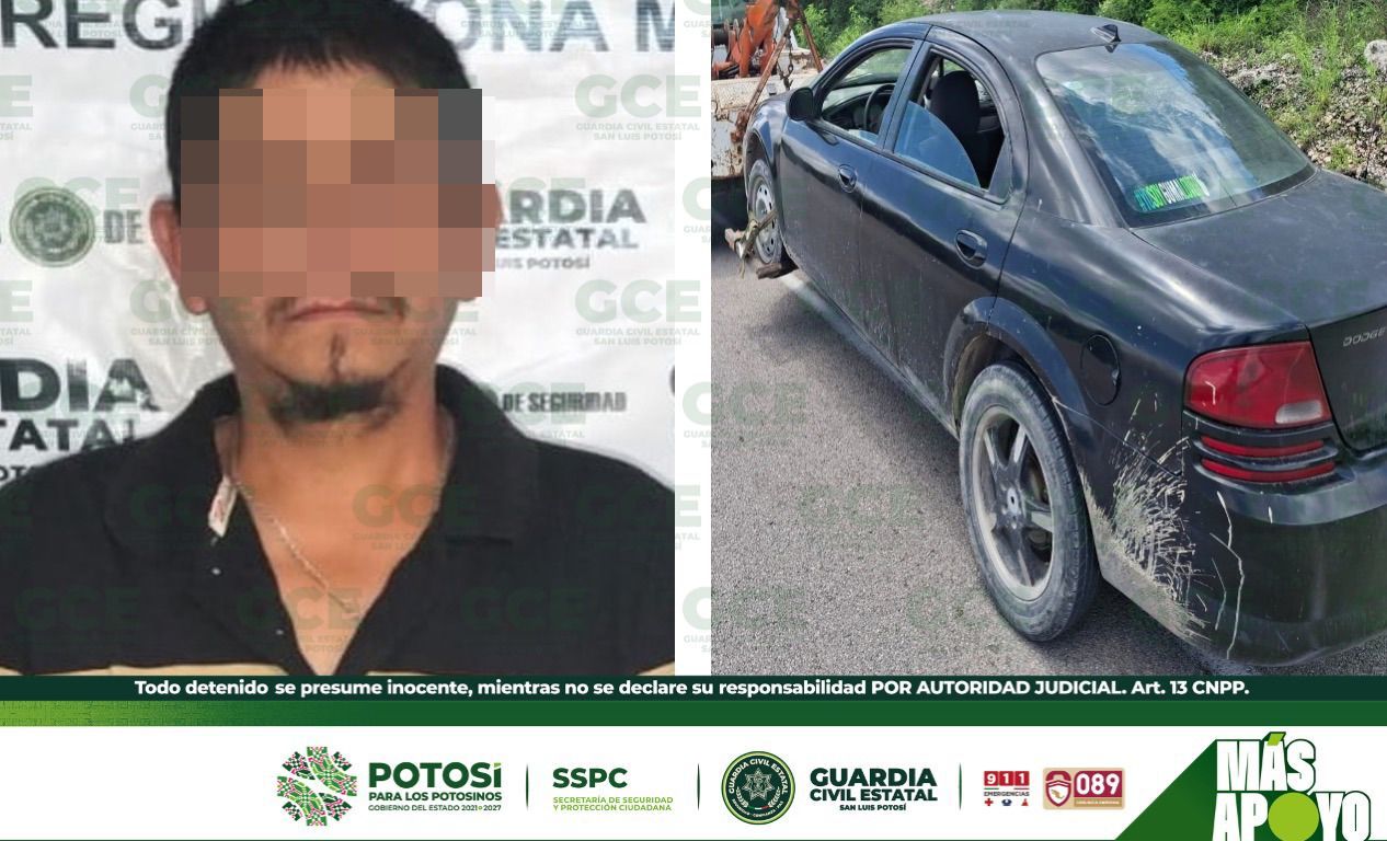 Mediante los dispositivos de seguridad que son instalados en zonas estratégicas del territorio potosino, elementos de la Guardia Civil Estatal (GCE) detuvieron al conductor de un automóvil, después de notar que presumiblemente manejaba de manera temeraria.
