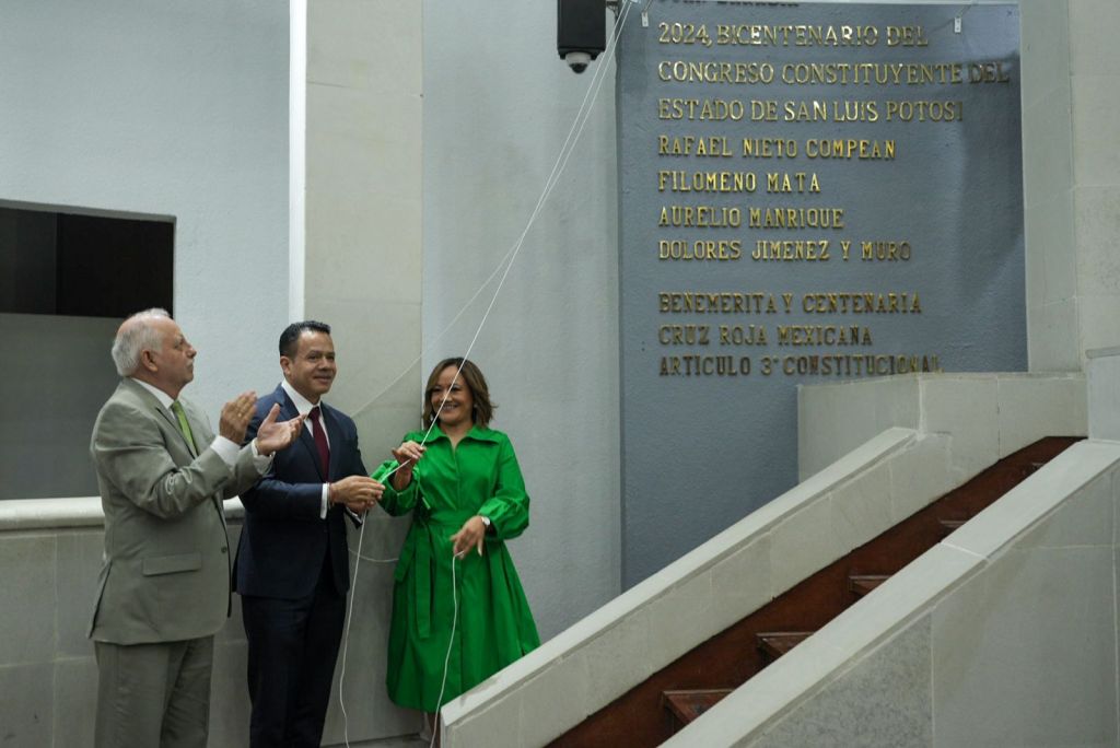 Con la presencia del Oficial Mayor de Gobierno del Estado, Noé Lara Enriquez, como representante del Poder Ejecutivo, y la Magistrada Silvia Torres Sánchez, en representación del Poder Judicial, el Congreso del Estado llevó a cabo la develación del epígrafe conmemorativo “2024 Bicentenario del Congreso Constituyente del Estado de San Luis Potosí.” Este acto solemne es con motivo de la celebración de los 200 años de la instalación del Congreso del Estado de San Luis Potosí.